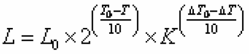 溫度每升高10℃,壽命小時(shí)數(shù)減半