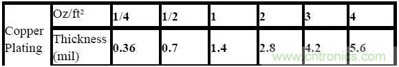 在疊層里面是這么定義的,在一平方英尺的面積上鋪一盎司的銅的厚度為1Oz,對(duì)應(yīng)的單位如下