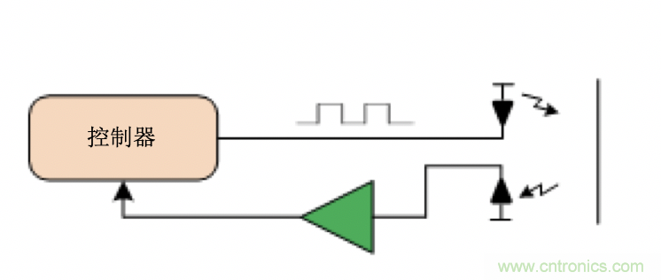 如圖6所示,紅外LED和光電晶體管被廣泛用作檢測(cè)距離的低成本解決方案。距離信息與固定頻率調(diào)制波所攜帶回波的幅度相關(guān)。