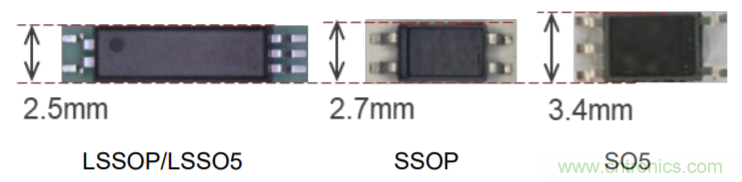 圖 5. LSSO5/LSSOP、SSOP 和 SO5 的對比