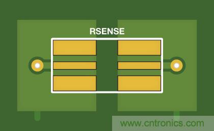 為了避免增加電阻,需要把電壓檢測(cè)走線(xiàn)正確的布局到檢測(cè)電阻焊盤(pán)處。系統(tǒng)電流將在上部焊點(diǎn)導(dǎo)致顯著的壓降,但檢測(cè)電流則會(huì)在下部焊點(diǎn)導(dǎo)致可以忽略不計(jì)的壓降??梢?jiàn),這種焊盤(pán)分離方案可以消除測(cè)量中的焊點(diǎn)電阻,從而提高系統(tǒng)的總體精度。