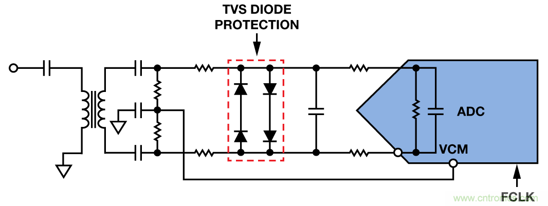 圖6. 帶TVS二極管保護(hù)的ADC前端電路