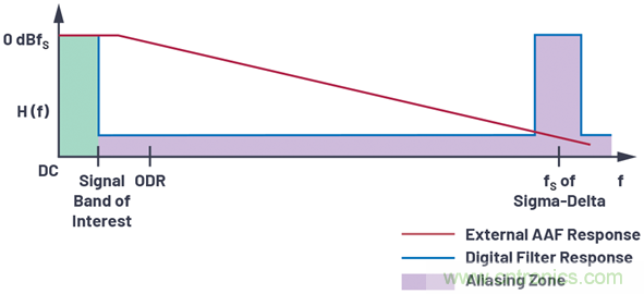 圖8.∑-Δ 架構(gòu)中的抗混疊濾波器要求。