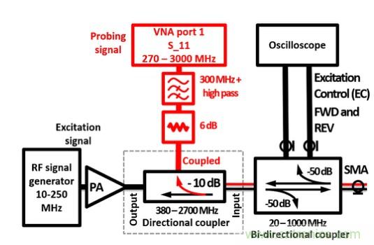 他們的概念是通過(guò)改變等離子體激勵(lì)信號(hào)的頻率和/或功率來(lái)控制弱探測(cè)射頻或微波信號(hào)所經(jīng)歷的阻抗。但是直到現(xiàn)在還沒(méi)有實(shí)驗(yàn)研究。通過(guò)在一個(gè)頻率范圍內(nèi)改變強(qiáng)射頻激勵(lì)信號(hào),可以改變等離子體的性質(zhì),而弱射頻探測(cè)信號(hào)將在不同的頻率范圍內(nèi),并且它將作為可調(diào)阻抗元件進(jìn)入等離子體單元。當(dāng)?shù)入x子體單元比探測(cè)信號(hào)波長(zhǎng)小得多時(shí),放電可以用分布參數(shù)等效電路表示。其參數(shù)可以從在很寬的頻率范圍內(nèi)通過(guò)探測(cè)測(cè)得的總阻抗中推斷出來(lái)。通過(guò)均勻模型可以對(duì)放電行為進(jìn)行特別簡(jiǎn)單的解釋,該模型假設(shè)離子密度在任何地方都是恒定的,包括電極附近的振蕩鞘層,其中電子數(shù)密度幾乎為零。在這種情況下,可以從從多頻探測(cè)推斷出的集總參數(shù)值中計(jì)算出等離子體特性。在本文中,他們?cè)趯?duì)具有非常不同尺寸的等離子體單元的實(shí)驗(yàn)研究中進(jìn)一步發(fā)展了這一思想。