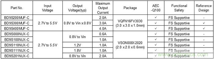表2. 二次DC/DC轉(zhuǎn)換器IC“BD9S系列”產(chǎn)品陣容