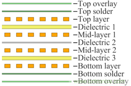 為了更大限度地減小電源環(huán)路電感,建議使用 4 層電路板,以便從相鄰層返回電源環(huán)路。圖 2-2 所示為一個(gè)電路板層堆疊示例。通常情況下,通過(guò)改變電介質(zhì) 2 的厚度來(lái)增加或降低電路板厚度??紤]到關(guān)鍵信號(hào)的信號(hào)完整性和對(duì)開關(guān)節(jié)點(diǎn)添加的寄生電容,最小厚度取決于相鄰層的信號(hào)隔離要求。對(duì)于 1kW 以下的低功率級(jí)別,推薦 2oz厚銅板的最小厚度為 32mil,其中電介質(zhì) 2 厚度為 10.6mil。