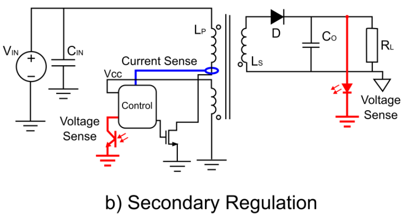 這其中還包含了控制器,因此,設(shè)計(jì)人員必須找到一種方法,無(wú)需繞過(guò)隔離屏障即可檢測(cè)變換器輸出電壓。這可以通過(guò)兩種調(diào)節(jié)方法來(lái)實(shí)現(xiàn):原邊調(diào)節(jié)和副邊調(diào)節(jié)。