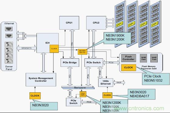 服務器平臺有3種時鐘拓撲結構:內部系統(tǒng)時鐘、混合系統(tǒng)時鐘和外部系統(tǒng)時鐘。針對PCIe外部時鐘架構,安森美半導體提供多種專用時鐘選擇,包括時鐘產生器(NB3N3002/NB3N5573/NB3N51034/NB3N51054/NB3N51054/NB3N