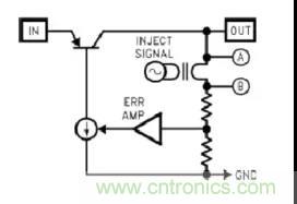可以通過網(wǎng)絡分析儀來測量回路增益,它通過向網(wǎng)絡回路注入低電平的正弦波,然后從直流信號掃描到使增益下降到0dB的頻率來測量增益的響應。