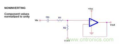 放大電路有兩個基本類型:同相放大器和反相放大器。他們的交流耦合版本如圖三所示。