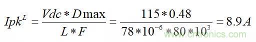 在最低輸入電壓情況下,初級峰值電流最大,初級電流峰值最大值