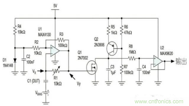 圖1:對電容與偏壓關(guān)系進行特征分析的電路。