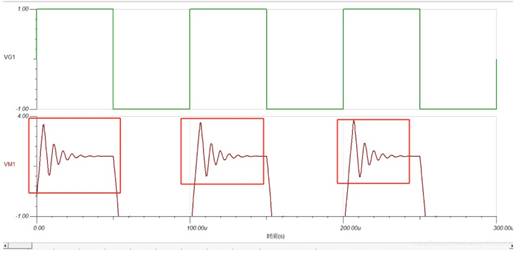 再來看看輸出波形,振鈴現(xiàn)象是不是明顯改善了呀,想要盡量改善振鈴甚至避免振鈴現(xiàn)象就要合理的設(shè)置參數(shù),這里就不一點一點修改參數(shù)了,只指明一個方向,具體電路具體分析。