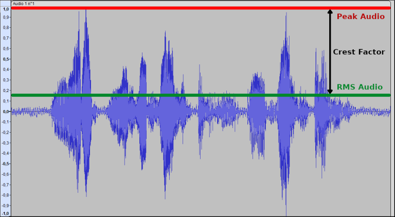 圖1:峰值音頻電平和RMS音頻電平之間的關系