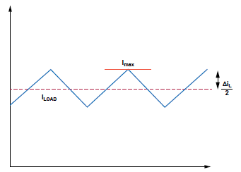 其中Vsense(max)在器件的數(shù)據(jù)手冊中確定,Imax是可汲取的最大負載電流。每個SMPS可以處理的最大電流(Imax)被定義為電感電流紋波的一半與平均負載電流之和,如圖3所示。