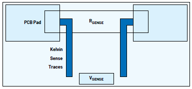 檢測走線來自檢測電阻器,它與PCB焊盤和載流走線分離。開爾文走線要細得多,并且會盡可能靠近檢測電阻器以避免寄生電阻增加。這使VSENSE能夠準確表示檢測電阻器兩端的電壓。因此,當檢測電阻器由于缺乏正確的開爾文連接、走線太長或只是由于所選值有誤而增加時,電流限制會由于VSENSE(MAX)能夠更快達到而在較低負載下觸發(fā),從而導(dǎo)致負載調(diào)整能力變差。