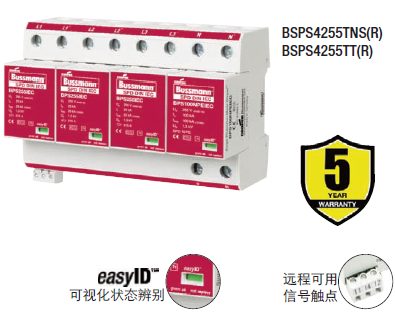 Cooper Bussmann IEC I級(jí)230伏、三極、結(jié)合了雷電流和浪涌保護(hù)器的模塊具有兩個(gè)特色:局部的、easyIDTM可視化辨別