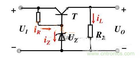 如圖1所示,限流電阻是在穩(wěn)壓管穩(wěn)壓Uz最小值時選擇(假設(shè)輸入UI保持不變),但是三極管要工作在放大區(qū),流入基極電流Ib需要一個最小值,IR=IZ+Ib。在電路正常工作時,IR保持不變,iz的變化量等于ib的變化量,這樣穩(wěn)壓管在IZ最大值時選擇對應(yīng)的功耗。