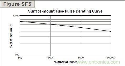 考慮應(yīng)用脈沖循環(huán)(可查圖3)/溫度(可查圖2)/電路差異折減(經(jīng)驗值取0.7),折算后 I2t=0.0082/(0.63*0.85*0.7)=0.0219A2s