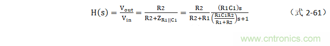 需要注意實(shí)際電路中不存在單零點(diǎn)電路,如圖 2.93,是包含一個極點(diǎn)與一個零點(diǎn)的電路,傳遞函數(shù)為式 2-61。