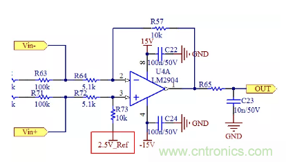 這里公式的成立,保證R64=R72,R73=R57,那么最終得到偏移公式是在原來(lái)基礎(chǔ)上加個(gè)電壓偏移量2.5V_Ref: