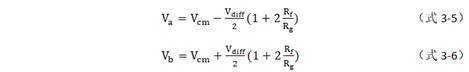 儀表放大器電路第一級放大器的輸出電壓Va,Vb分別為式3-5、式3-6。