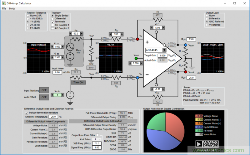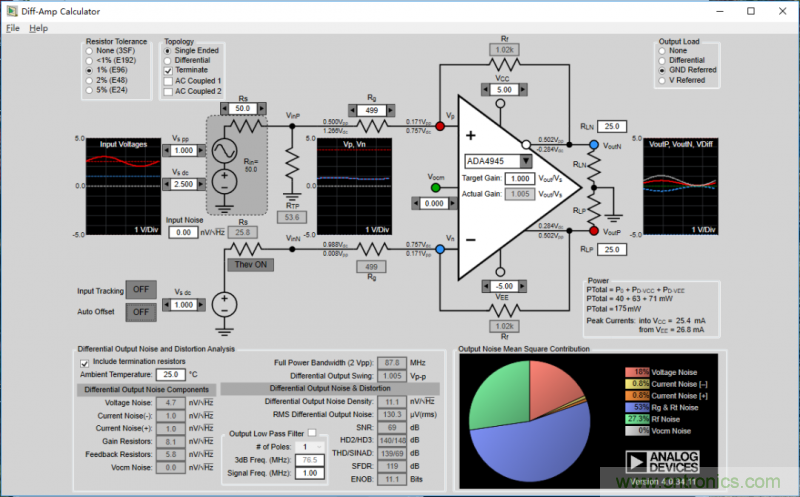 如圖3.39ADI DiffAmpCalc™工具配置ADA4945參數(shù)