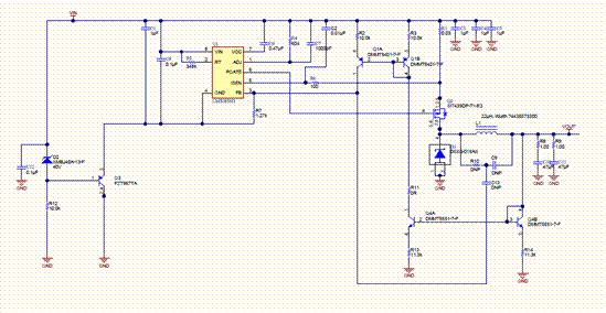 LM5085是我所述應(yīng)用的理想選擇,因?yàn)樗且粋€(gè)P通道非同步控制器,其VCC偏置電源參考VIN。在傳統(tǒng)應(yīng)用中,LM5085可承受高達(dá)75VIN的輸入電壓。對(duì)于輸入瞬態(tài)電壓遠(yuǎn)高于75V的應(yīng)用,請(qǐng)考慮此處提出的解決方案,該輸出為12V。