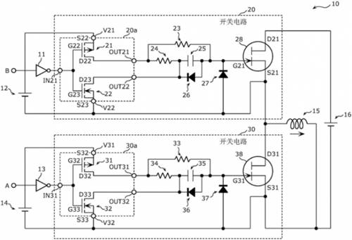 通過檢索發(fā)現(xiàn),松下早在2009年就在日本申請了一篇公開號為JP2010051165A的專利,其中采用了如下圖所示的驅(qū)動電路,該電路在晶體管的柵極設置有RC電路。專利中明確提到了該驅(qū)動電路可用于氮化鎵或碳化硅等寬禁帶半導體開關。雖然該專利最終并未能獲得授權,但也可以看到松下在這一領域的技術超前性。