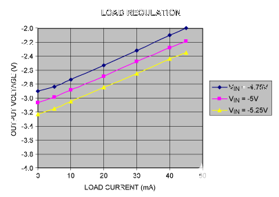 圖3.圖1電路在V時(shí)的負(fù)載調(diào)整率在電平為 -4.75V、-5V 和 -5.25V。