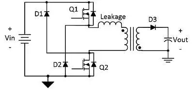 兩個(gè)開(kāi)關(guān)同時(shí)導(dǎo)通的事實(shí)在一定程度上抵消了效率的提高,因此導(dǎo)通損耗往往會(huì)增加,尤其是在低輸入電壓應(yīng)用中。幸運(yùn)的是,兩個(gè) FET 的漏源電壓鉗位到輸入電壓,因此與單開(kāi)關(guān)反激式相比,您可以使用額定電壓較低的 FET。鉗位電壓應(yīng)力在高輸入電壓應(yīng)用中也有優(yōu)勢(shì)。
