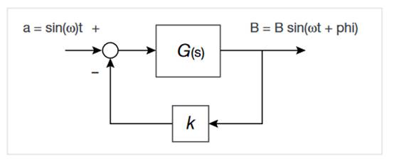 圖 1 顯示了一個廣義控制回路,其中將正弦波 a(t) 應(yīng)用于具有傳遞函數(shù) G(s) 的系統(tǒng)。在初始條件引起的瞬變衰減后,輸出 b(t) 變成具有不同幅度 B 和相對相位 ω 的正弦波。輸出 b(t) 的幅度和相位實(shí)際上與輸入正弦波頻率 (Ω rad/s) 處的傳遞函數(shù) G(s) 有關(guān)。反饋系數(shù)“k”決定了輸入信號如何根據(jù)輸出端的負(fù)載進(jìn)行調(diào)節(jié)。