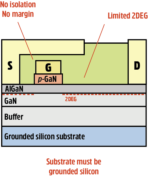 多米諾效應(yīng):Normally-off E-mode 缺乏柵極隔離、動(dòng)態(tài)閾值問題、較低性能和脆弱性