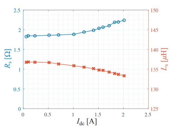 圖8:電感與電阻的直流疊加特性測量示例(f = 100 kHz)