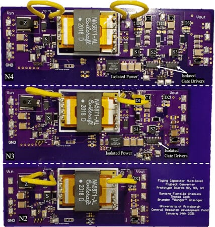 圖2 .印刷電路板 N2(底部)、N3(中)和 N4(頂部)。圖片由IEEE Open Journal of Power Electronics提供