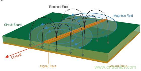 圖1:信號(hào)中不斷變化的電壓和電流會(huì)產(chǎn)生電磁場(chǎng)。
