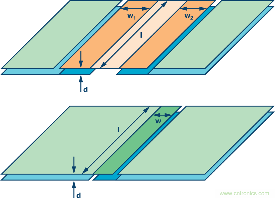 ε為PCB絕緣材料的介電常數(shù),F(xiàn)R4材料為4 × 10–1 1 F/m。