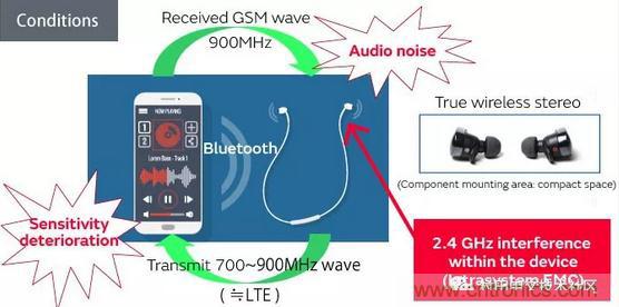 在這種情況下,我們引入了噪聲抑制的示例,其中同一電路中的噪聲干擾藍牙通信信號。該技術(shù)還可以應(yīng)用于以2.4 GHz頻率通信的非藍牙設(shè)備,我們已經(jīng)實現(xiàn)了噪聲抑制組件,這些組件在2.4 GHz的超小型x 0.4 mm x高頻范圍內(nèi)非常有效考慮到在添加組件時需要節(jié)省安裝表面積,需要0.2 mm。