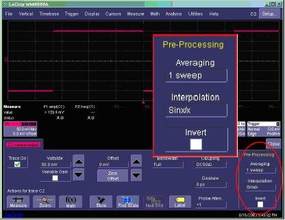 所有力科DSO都提供了SinX內(nèi)插模式。在力科全系列X-Stream DSO上,可以通過通道設(shè)置菜單控制內(nèi)插,每條通道支持不同的內(nèi)插選擇。在以前的力科示波器型號(hào)上,則通過演算曲線提供SinX內(nèi)插。