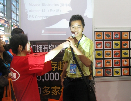 目錄分銷知識講座場場人氣爆滿,每天都有近千位觀眾積極搶答講座中提出的問題,參與現(xiàn)場的抽獎活動,并通過唱歌、簽名等形式表達對Digi-Key的認可與祝福。其中200多名觀眾抽得價值138元的無線鼠標大獎,3000多名觀眾獲得了LED 手電筒、七彩小鬧鐘以及四色彩筆等小禮物。以下是現(xiàn)場發(fā)回來的一些照片,讓我們一起來感受現(xiàn)場的火爆氣氛!