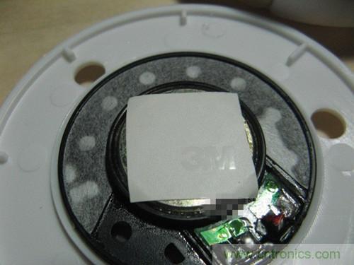 記得揚聲器背面貼一段絕緣膠帶,以防止金屬外殼對電池保護電路板造成短接的影響。