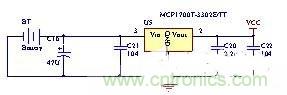 ③電源電路如圖6所示,手持遙控使用5V~9V干電池為系統(tǒng)供電。