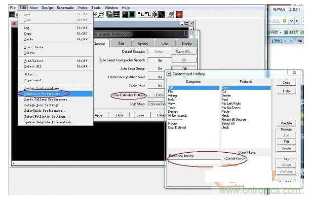 答案是肯定的,選擇Edit下的Schematic parameters,點(diǎn)User definable hotkeys后的editor,如圖3所示。