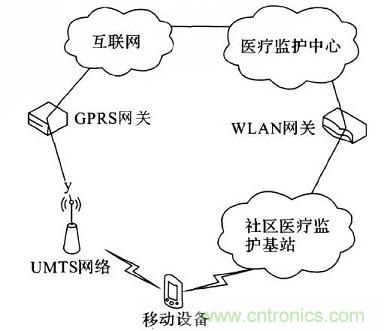 系統(tǒng)中包括無線個人網(wǎng)絡(luò)(wireless person2al area network,WPAN ) 、ZigBee網(wǎng)絡(luò)以及一系列醫(yī)療監(jiān)護網(wǎng)絡(luò)的醫(yī)療傳感器節(jié)點。本系統(tǒng)具有良好的擴展性,例如醫(yī)護人員在急救途中或在其他醫(yī)院可以分別利用WLAN /UMTS網(wǎng)關(guān)和互聯(lián)網(wǎng)與系統(tǒng)進行信息交互。