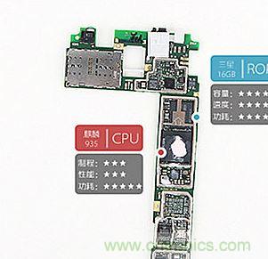 這一大片預(yù)留的可能是高配版外置基帶芯片位置。高配版支持雙網(wǎng)同時(shí)在線上網(wǎng),雙通道網(wǎng)絡(luò)很有可能是通過麒麟935內(nèi)置基帶和外置基帶芯片同時(shí)解決。