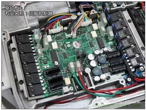 在主控板下方,并排排列著兩塊面積比較大的驅(qū)動(dòng)板。其專業(yè)名稱為:伺服控制器。驅(qū)動(dòng)板1負(fù)責(zé)兩塊電機(jī)的一套繞組,驅(qū)動(dòng)板2負(fù)責(zé)兩塊電機(jī)的另一套繞組。假如其中一套繞組失效,那么另一套繞組可以繼續(xù)使用;若其中一塊驅(qū)動(dòng)板崩潰掉,那么另一塊驅(qū)動(dòng)板照樣可以負(fù)責(zé)兩塊電機(jī)的轉(zhuǎn)動(dòng)。這是一種互相備份的設(shè)計(jì),它能夠有效增強(qiáng)自平衡電動(dòng)車的安全性,并降低事故率的發(fā)生,并不是每一種自平衡電動(dòng)車?yán)锒紩?huì)有。