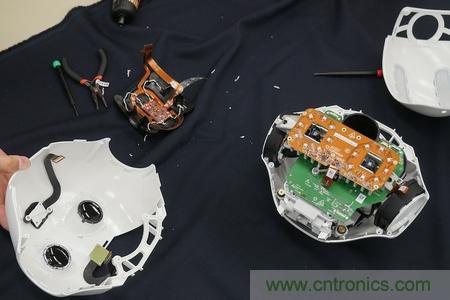 接著再拆下頭頂?shù)耐獍?,麥克風陣列和觸摸傳感器映入了眼簾。