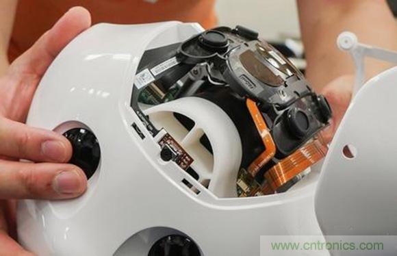 那么,相當于人類眼睛的攝像頭在哪里呢?上圖中“面部”外殼背面的2個部件就是。它們分別從額頭上的開口和看上去像嘴巴的開口,觀察外界的情況。