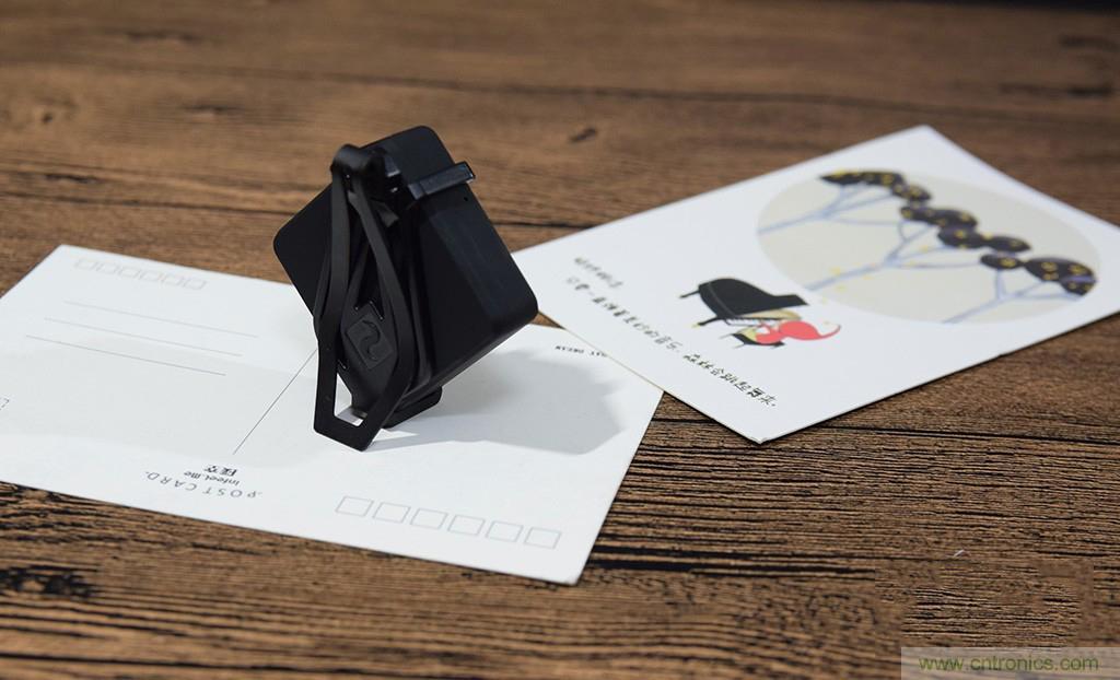 來請出我們這個小巧迷你的主角——Foream便利貼相機,43mm × 13.8mm 的三圍,加上僅 34g 的重量,全新酷黑色的類膚材質(zhì),放在手里非常小巧,看起來做工與質(zhì)感很強。