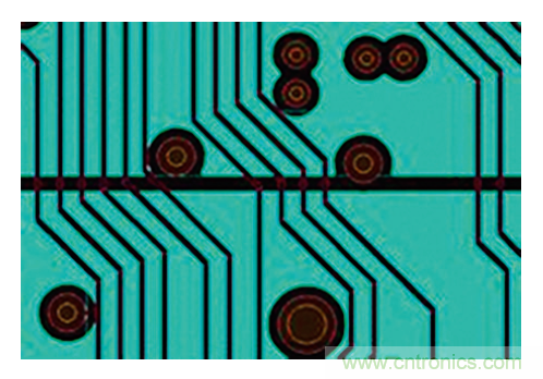 圖8:印刷電路板俯視圖:信號跨越分離面。